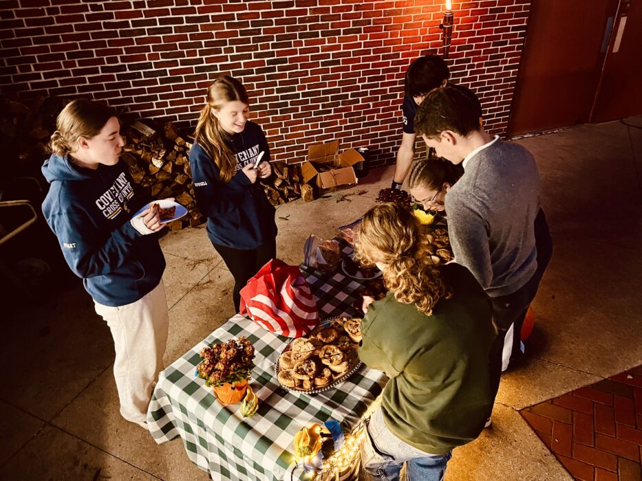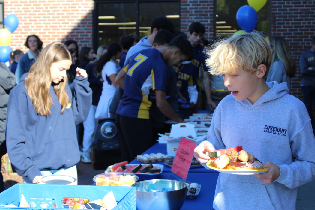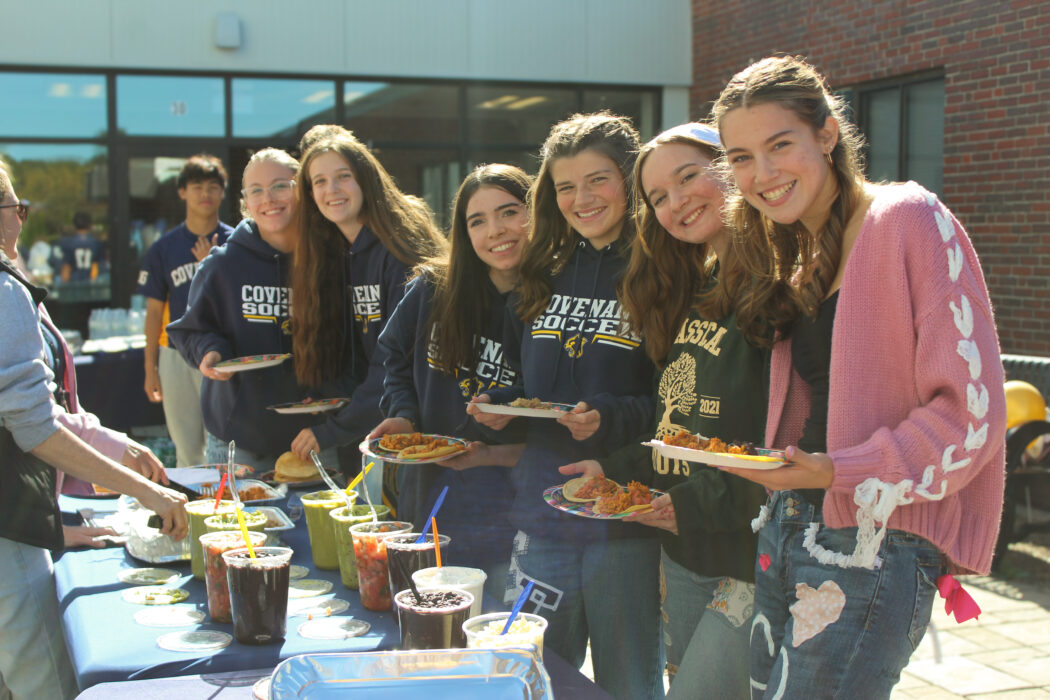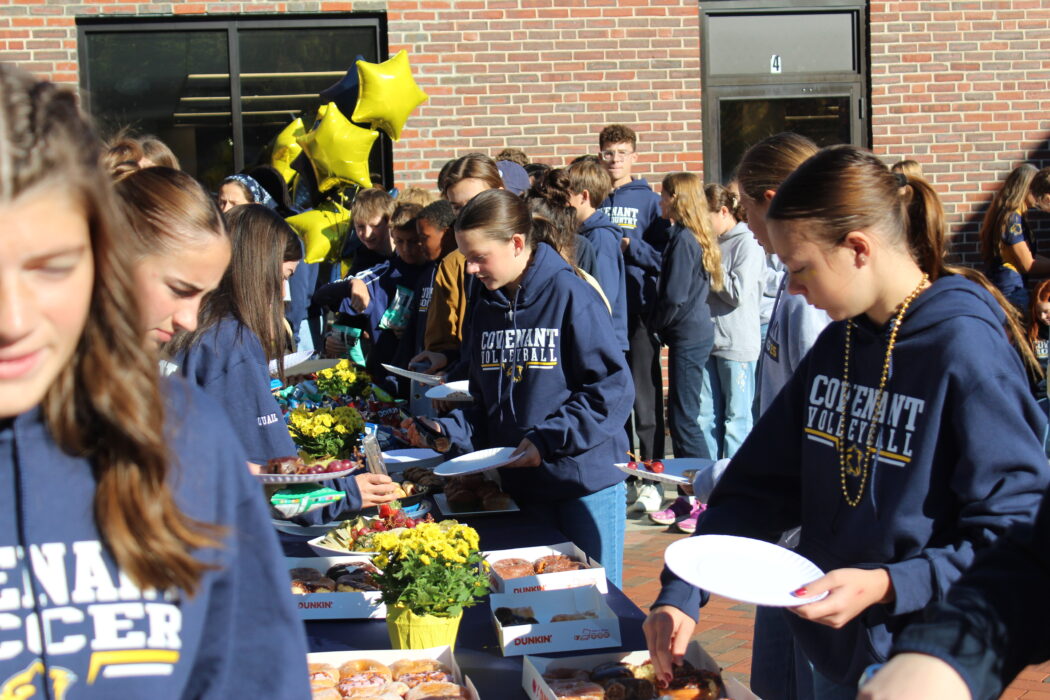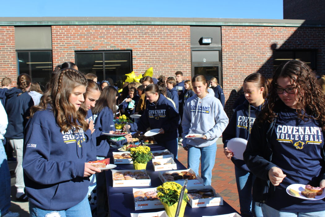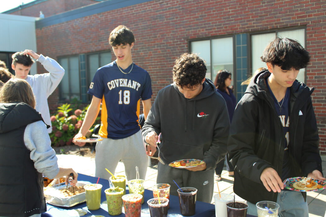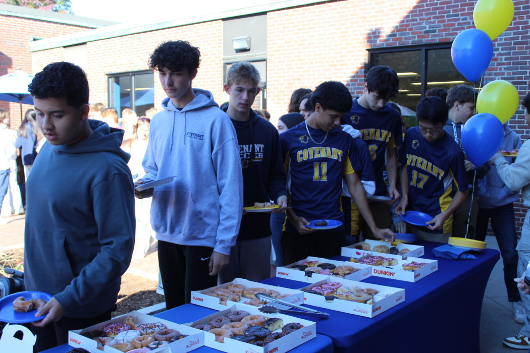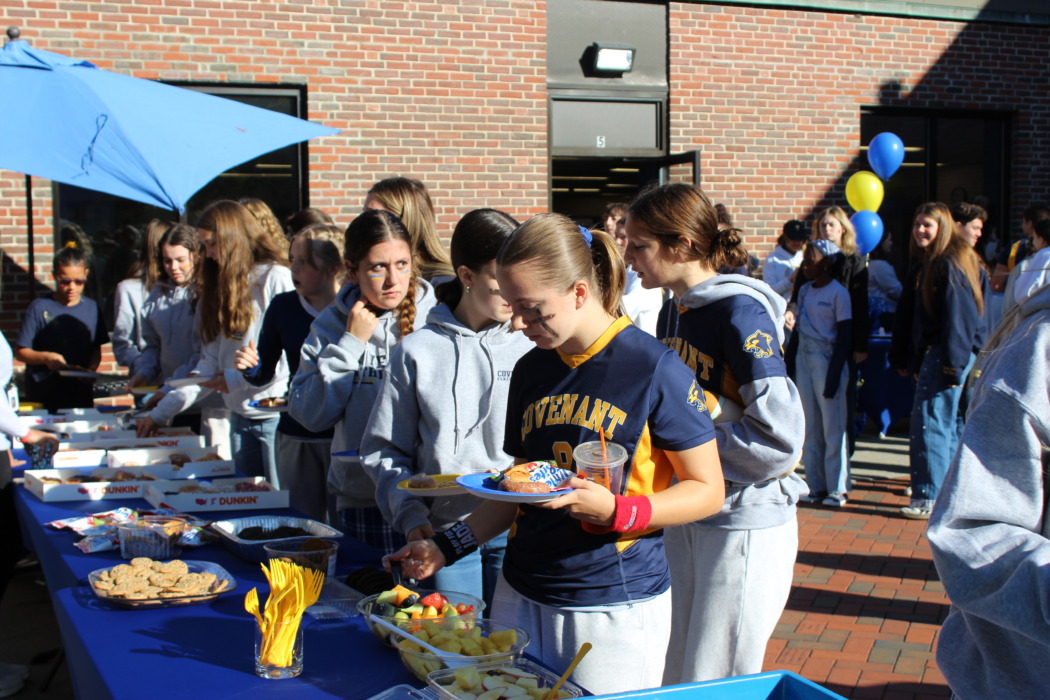 Upper School students were treated to a snack in the cafeteria courtyard hosted by the Covenant Parent Connection.