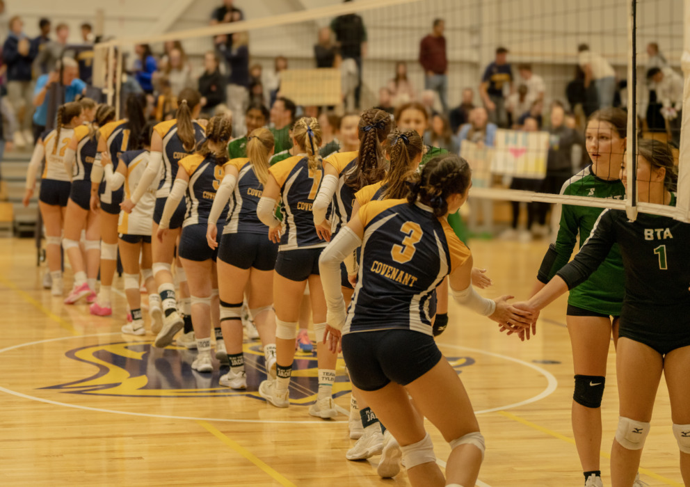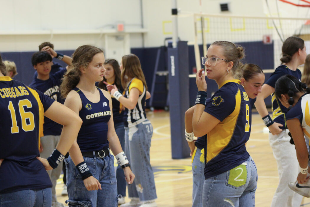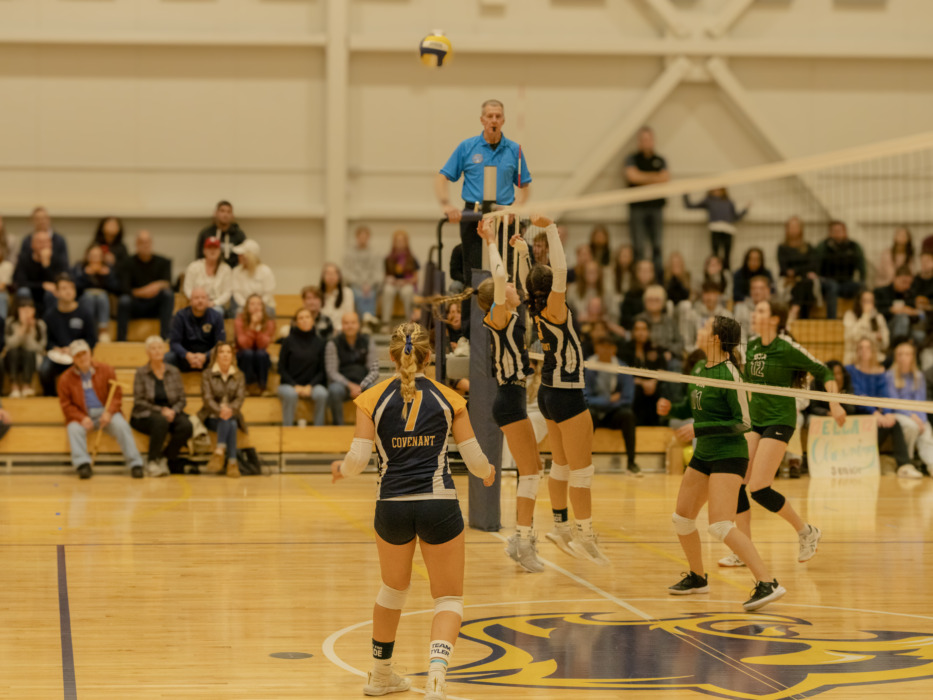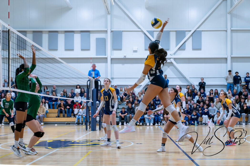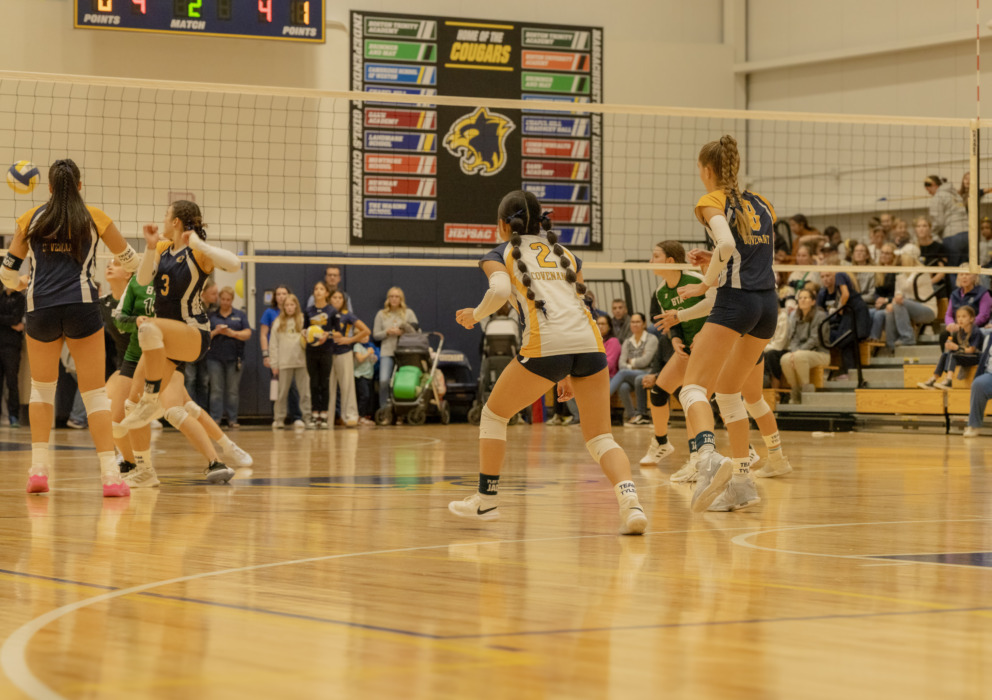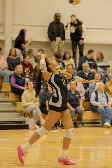 Girls Varsity Volleyball hosted Boston Trinity Academy for our Homecoming match on Friday night – and the girls won in three exciting and entertaining sets: 25-15, 25-23, 25-19. The PAAC was packed, and the place was rocking! Every player made meaningful contributions to this team win. The Cougars started out red-hot, building a big lead during the first set by scoring from behind the service line and on attack. The second set was tightly contested, with the Cougars needing a clutch kill by Leanna Rothier (’27), assisted by Riley Baird (’25), to finish the set. The third set was also a back-and-forth affair, with the girls making timely plays at key moments to secure the victory. The Cougars’ attack was led by 7 kills from Leanna, 6 kills from Julia Ray (’25), and consistent communication from Riley. Magdalen Miller (’25), Madeleine Trumbull (’25), and Ella Chewning (’25) made a variety of important plays on defense.