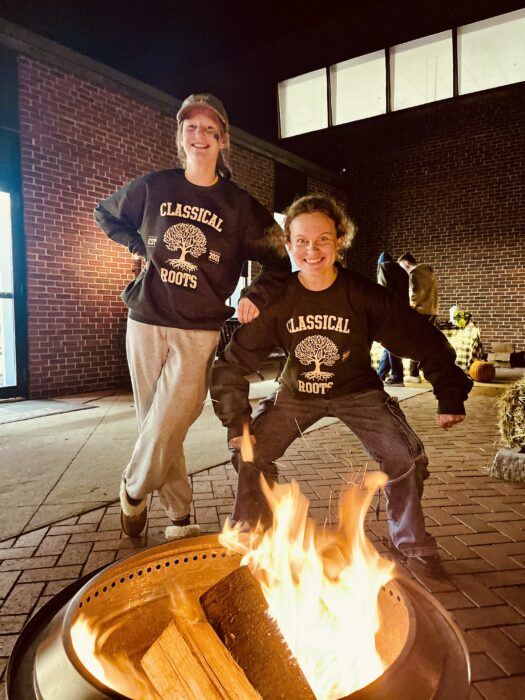 Rhetoric School students and CCA Alumni joined the Classical Roots Council at Night of Fire where they gathered in the cafeteria courtyard after the Homecoming games for s’mores, live music featuring American Singles, poetry, and more!